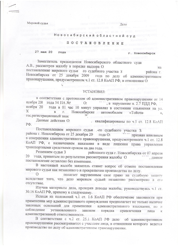 Успех данной категории дел зависит от "качества" первоночально собранного материала. Протоколы об административных правонарушенях состоят из разделов, содержание каждого разьясняется лицу, в отношени которого возбуждено производство под роспись. Соответственно, Ваши заявления, отраженные в них, могут сыграть решающее значение для исхода дела. Не стоит забывать о положениях ст. 51 Конституции РФ, воспользовавшиеся этим правом имеют больше шансов установить истину по делу.
