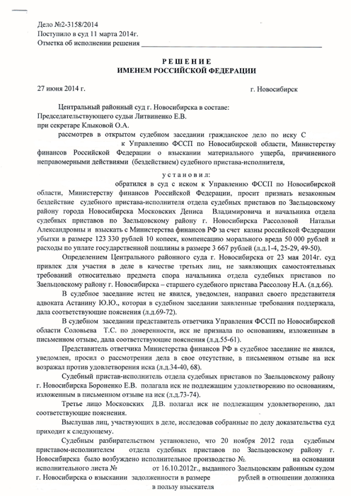 В интересах гр. С. было составлено исковое заявление о признании незаконным бездействия должностных лиц службы судебных приставов, взыскании причиненных убытков и компенсации морального вреда.